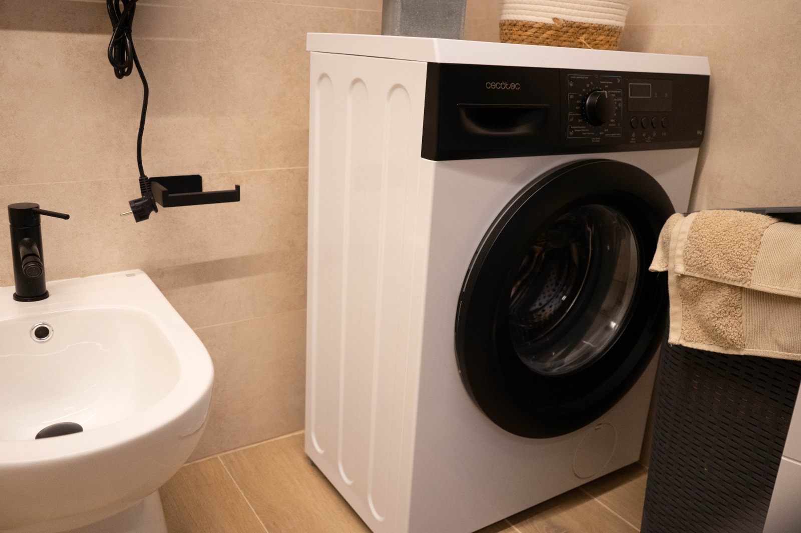 Ducha, gel de ducha, champú y suavizante, secador de pelo, toallas, lavadora, kit de primeros auxilios